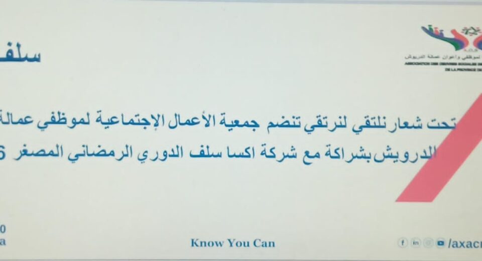 صدى الريف | أحمد لوكيلي تنظم جمعية الأعمال الاجتماعية لموظفي وأعوان عمالة إقليم الدريوش، بشراكة مع وكالة “أكسا سلف”، النسخة.