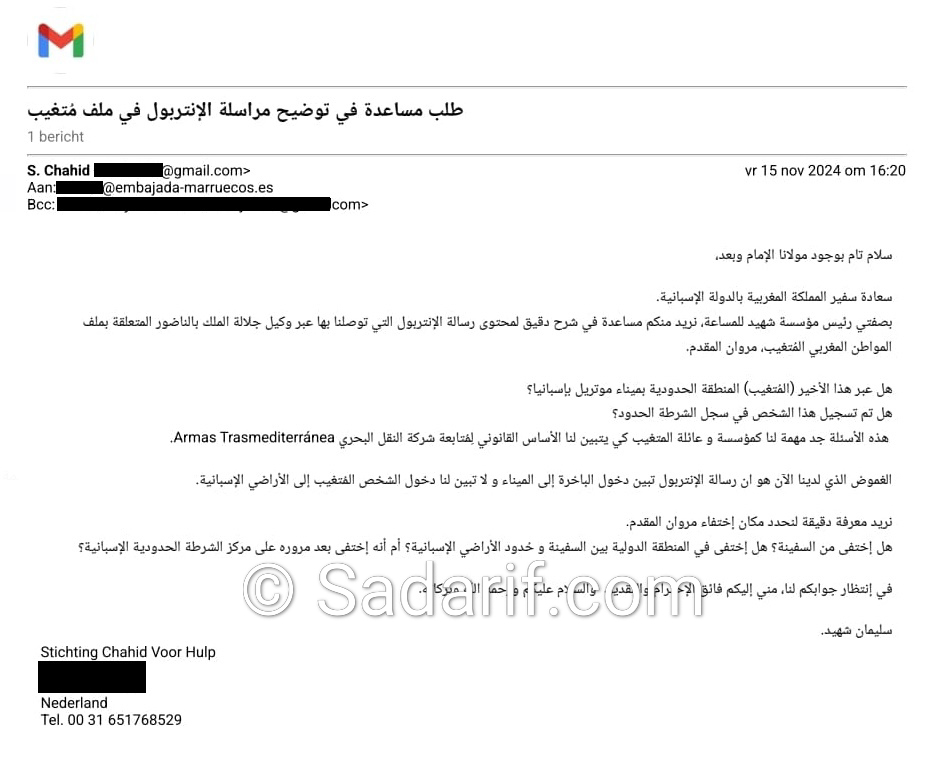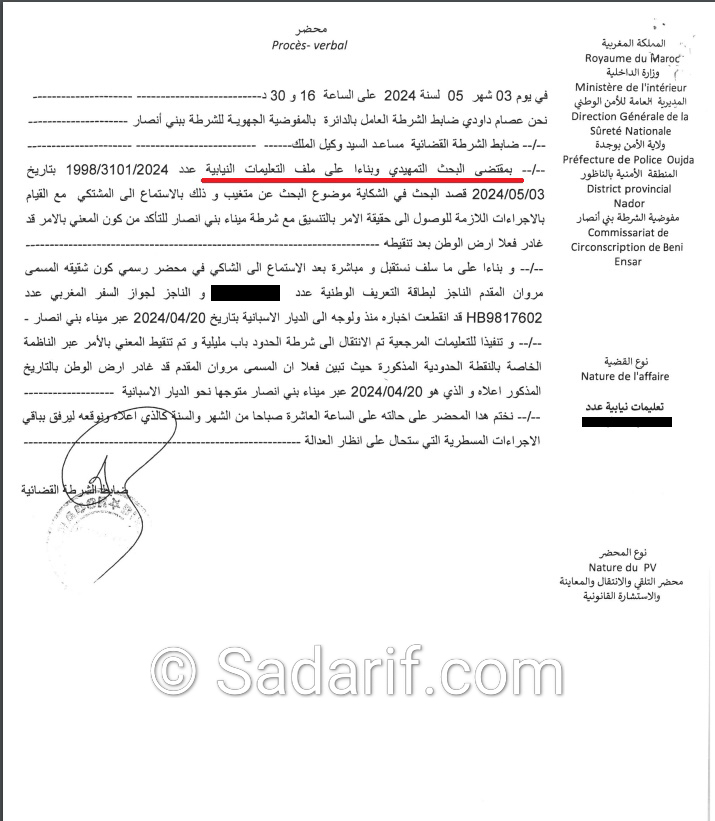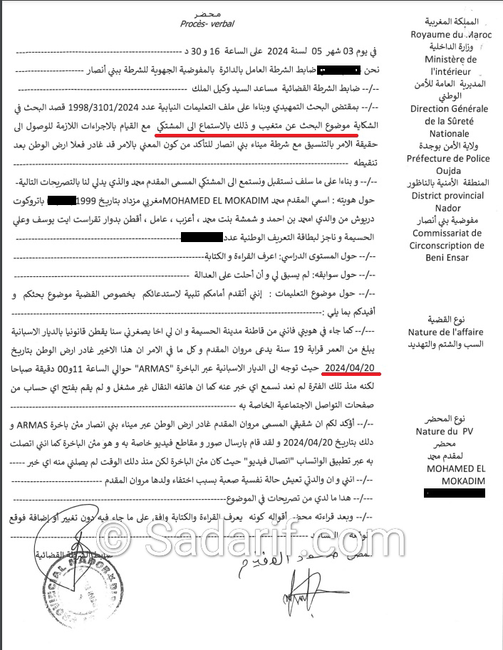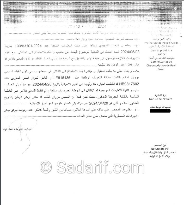 بلاغ النيابة العامة بالناظور أكد مغادرة مروان للتراب الوطني، في حين أفاد الإنتربول بدخوله إلى الأراضي الأوروبية، لكنه اختفى فور وصوله إلى ميناء موتريل.