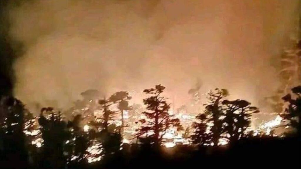 الحريق الذي لا تزال أسبابه مجهولة، يتفاقم بسرعة كبيرة خاصة بين أشجار الأرز الكثيفة التي تشتهر بها المنطقة.